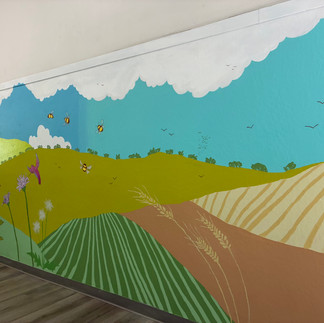 This Pollinator themed wall was just created during 'intensives week' at Grass Valley Charter School in Grass Valley. Over 5 days I led a group of 12 middle school students on transforming this drab hallway into a magical portal to the outside. The last day of the intensives week we did a mural tour of the school campus and downtown Grass Valley. I love being part of adding so much art to the school and town.